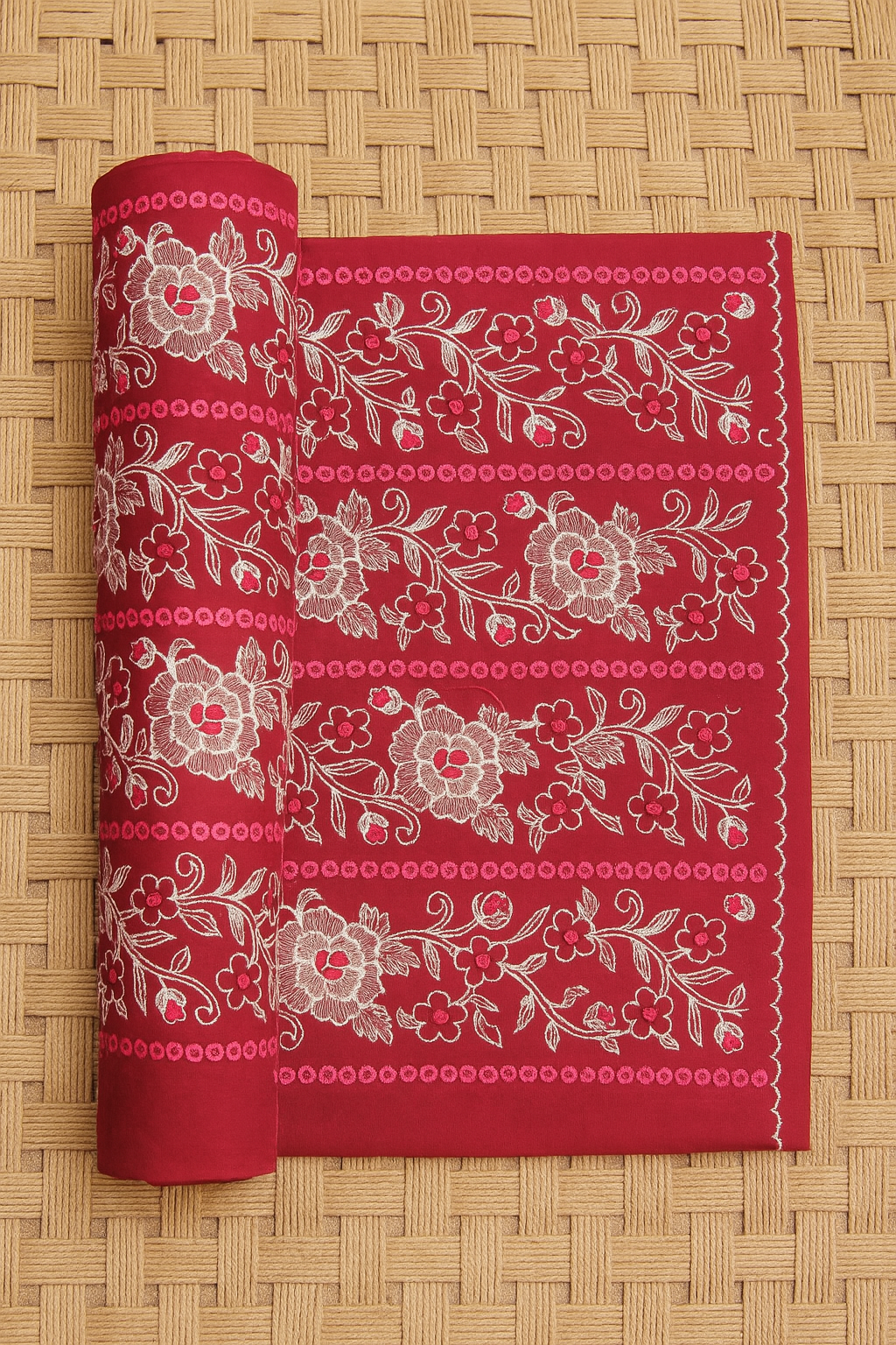 Craft your own elegance with this unstitched 2-piece lawn suit in a rich maroon hue, featuring intricate floral embroidery in vertical panel patterns. A timeless design that merges traditional charm with versatile style, perfect for the summer season.