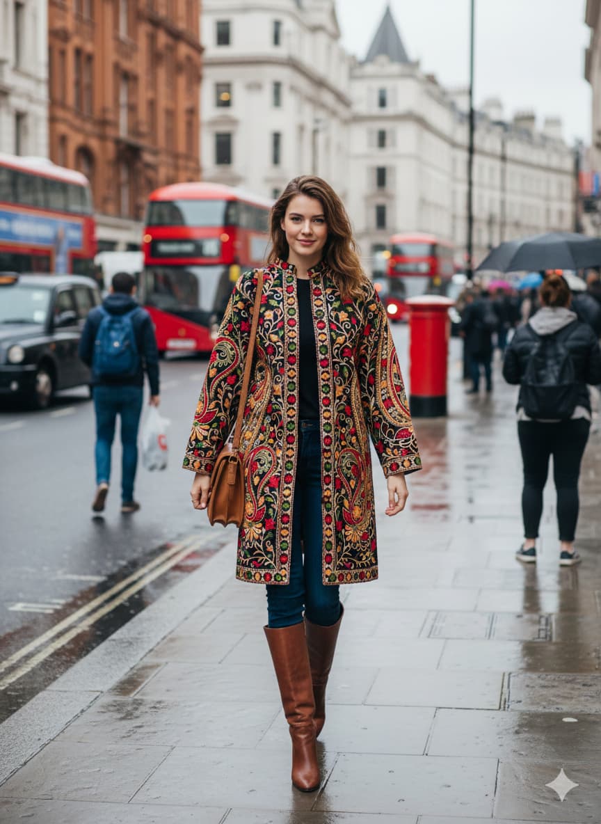 Elevate your wardrobe with a piece of timeless artistry. This stunning jacket is a testament to the exquisite and intricate embroidery traditions of Kashmir. Perfect for adding a touch of bohemian elegance and vibrant color to any outfit.