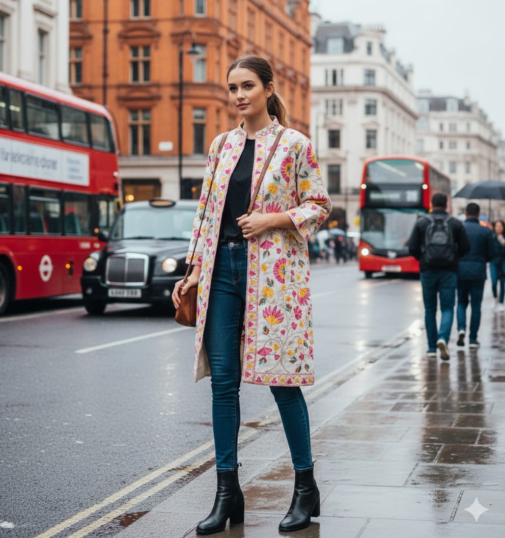 Elevate your wardrobe with a piece of timeless artistry. This stunning jacket is a testament to the exquisite and intricate embroidery traditions of Kashmir. Perfect for adding a touch of bohemian elegance and vibrant color to any outfit.