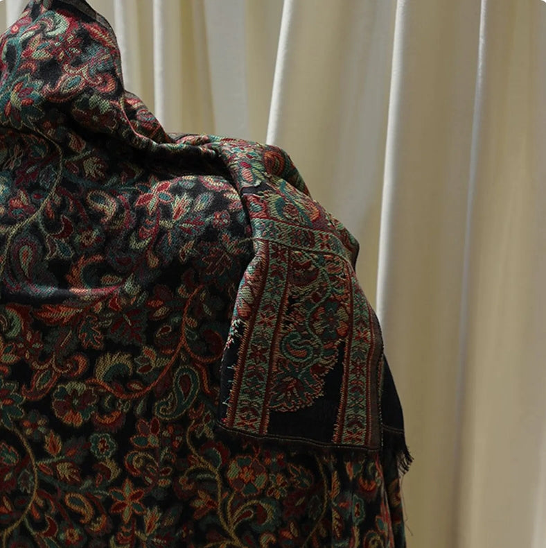 Meticulously crafted, each scarf is one-of-a-kind, available in limited quantities and sizes, ensuring you wear a distinctive piece that truly stands out. With its timeless design and high-quality craftsmanship, this scarf serves as a statement accessory, elevating your look while celebrating the rich cultural artistry from which it originates.
