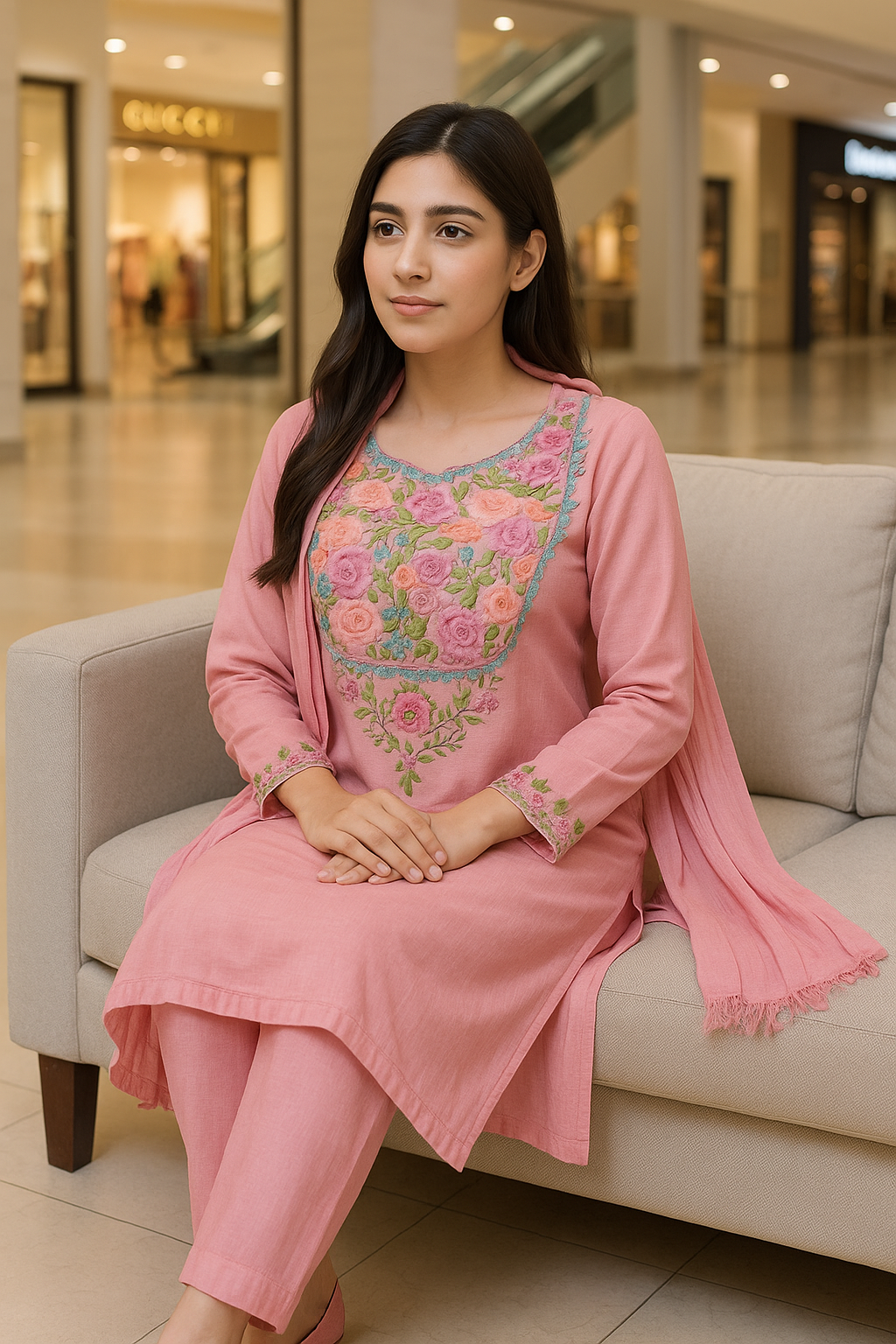 - Style: 3-piece stitched suit (Shirt + Trouser + Dupatta)