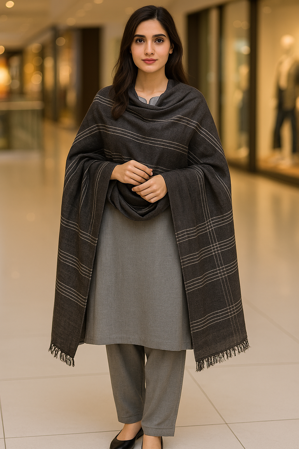 Elevate your everyday style with this classic charcoal-toned lawn dupatta, featuring delicate horizontal thread-lined detailing across the length. Crafted in breathable, soft lawn fabric, this dupatta is light yet structured. perfect for both casual and semi-formal wear.