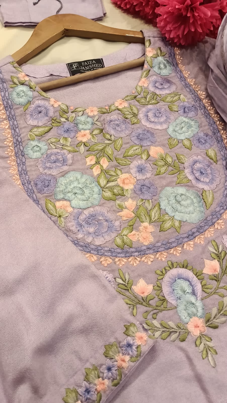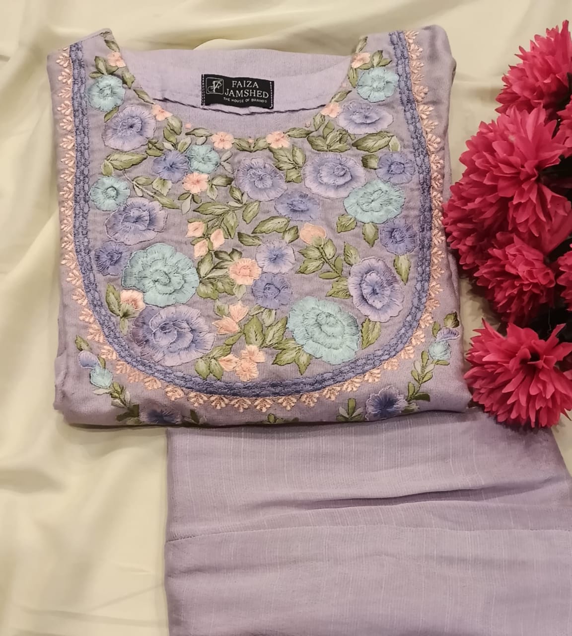Embroidered Cotton Salwar Kameez Set | Machine Embroidery Neckline & Sleeves