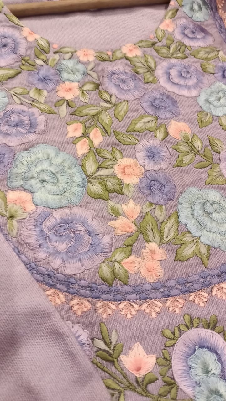 Work: Intricate multi-color floral machine embroidery on the neckline and delicate borders on the sleeves.