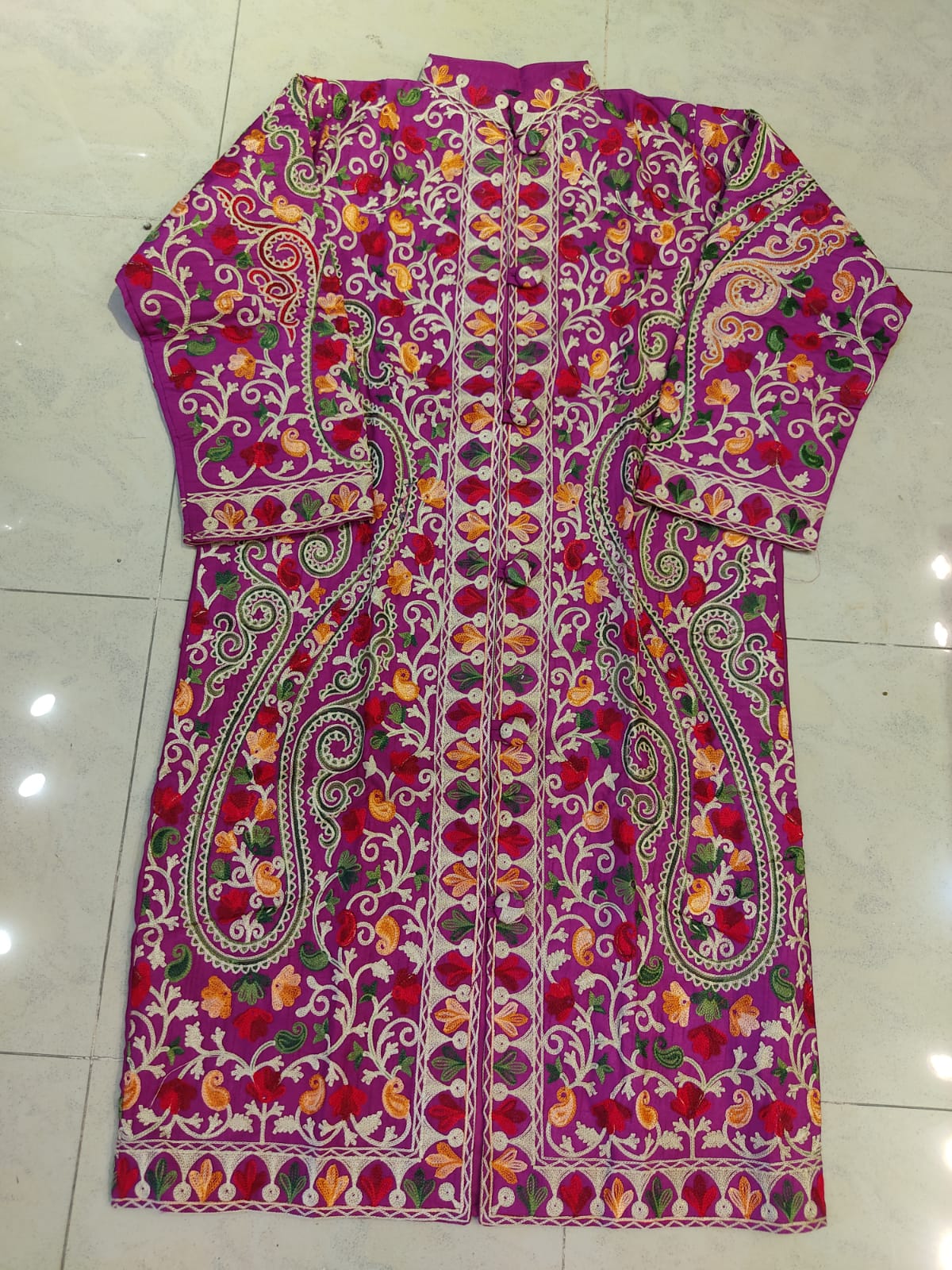 Hand-Embroidered Purple Kashmiri Jacket | Traditional Aari Work Tunic | Phiran Style Coat | Designer Ethnic Wear | Unique Gift for Her