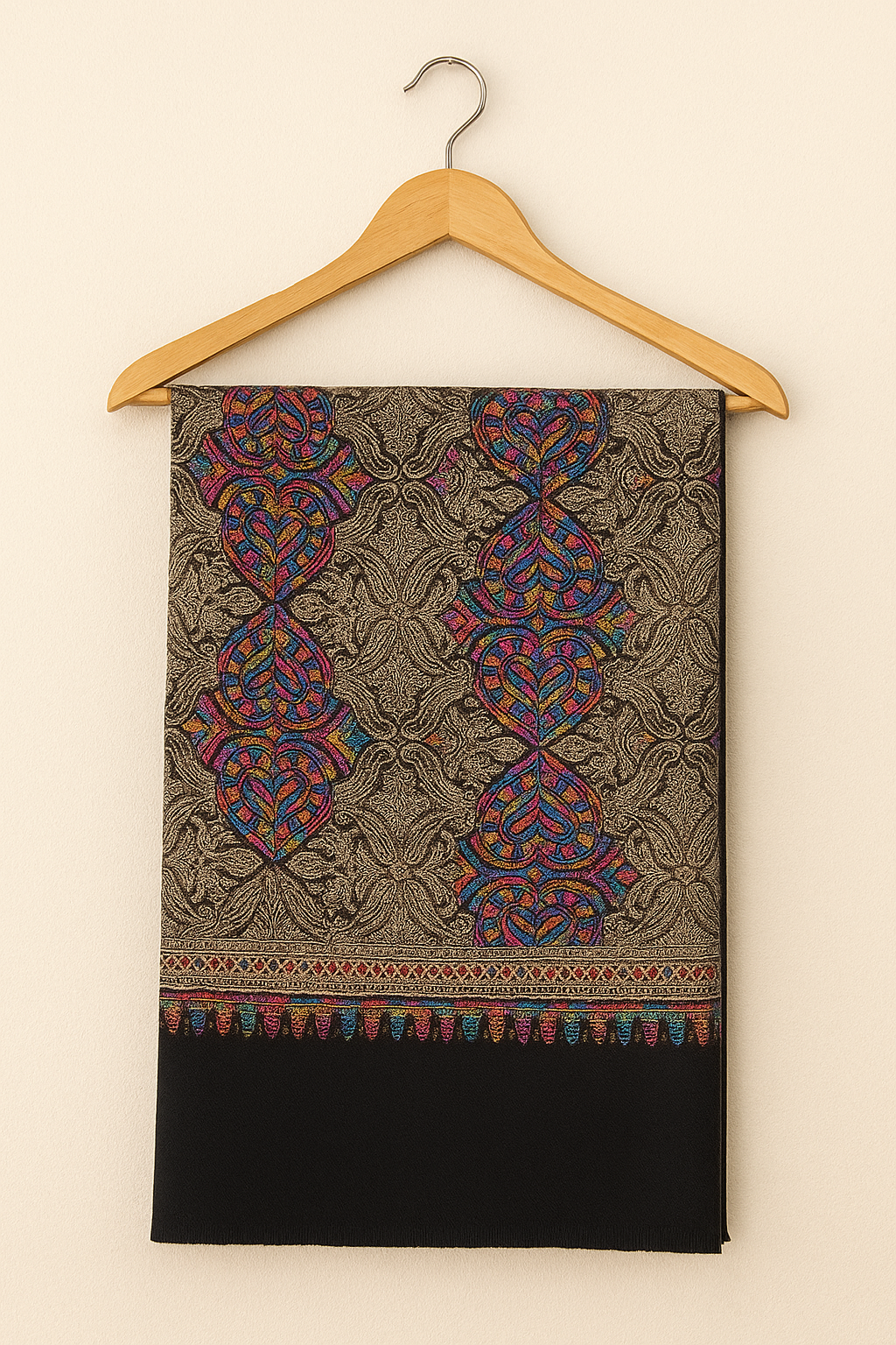 Luxury Multicolor Aari Embroidered Pashmina Shawl