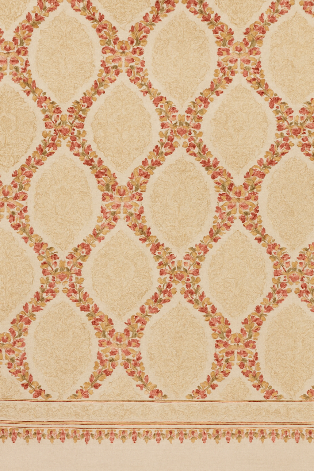 Luxury Pashmina Aari Embroidered Shawl Ivory Beige & Rose Gold Motif