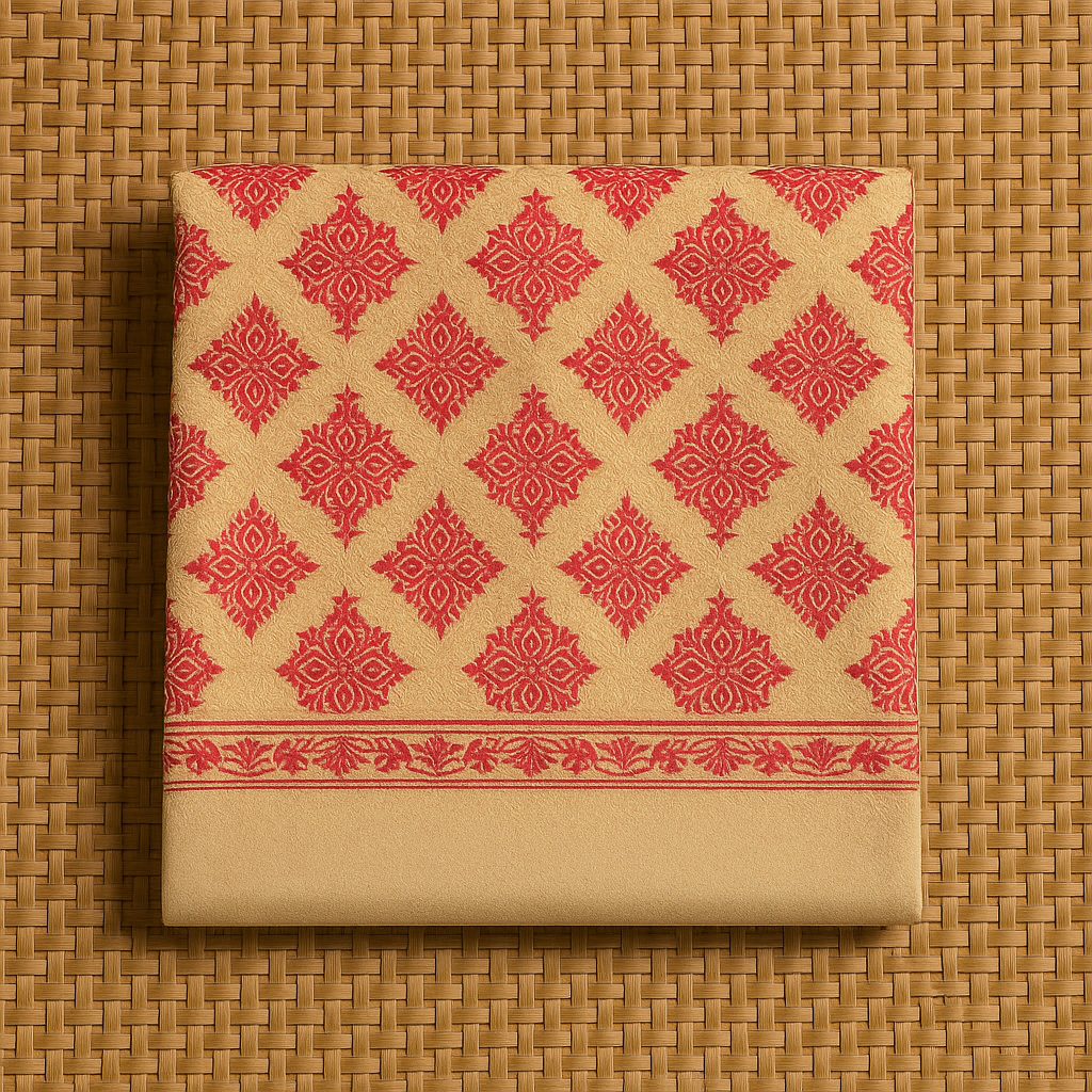 Luxury Pashmina Aari Embroidery Shawl – Red Motifs on Golden Base