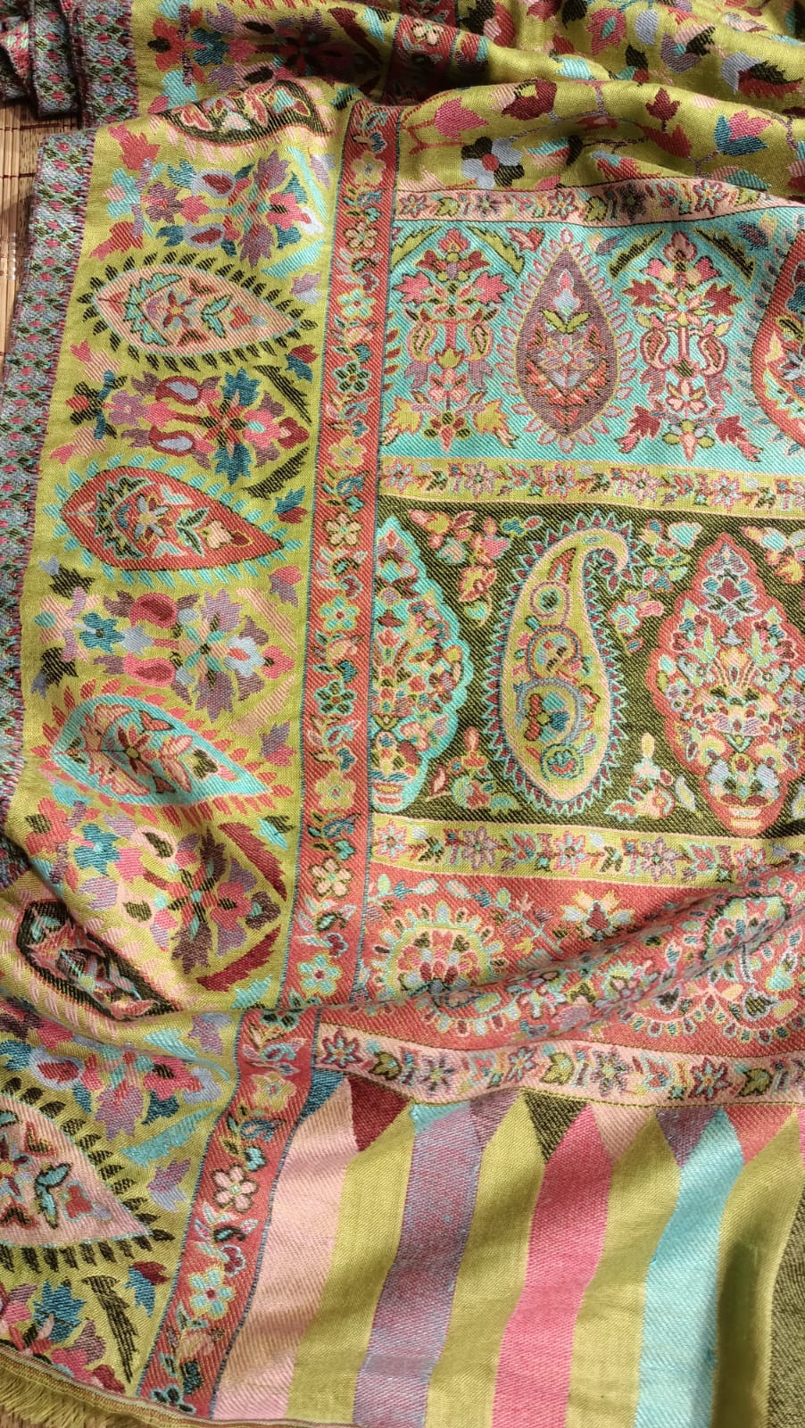 Luxury Pashmina Kani Shawl Multicolor Floral Weave with Intricate Borders