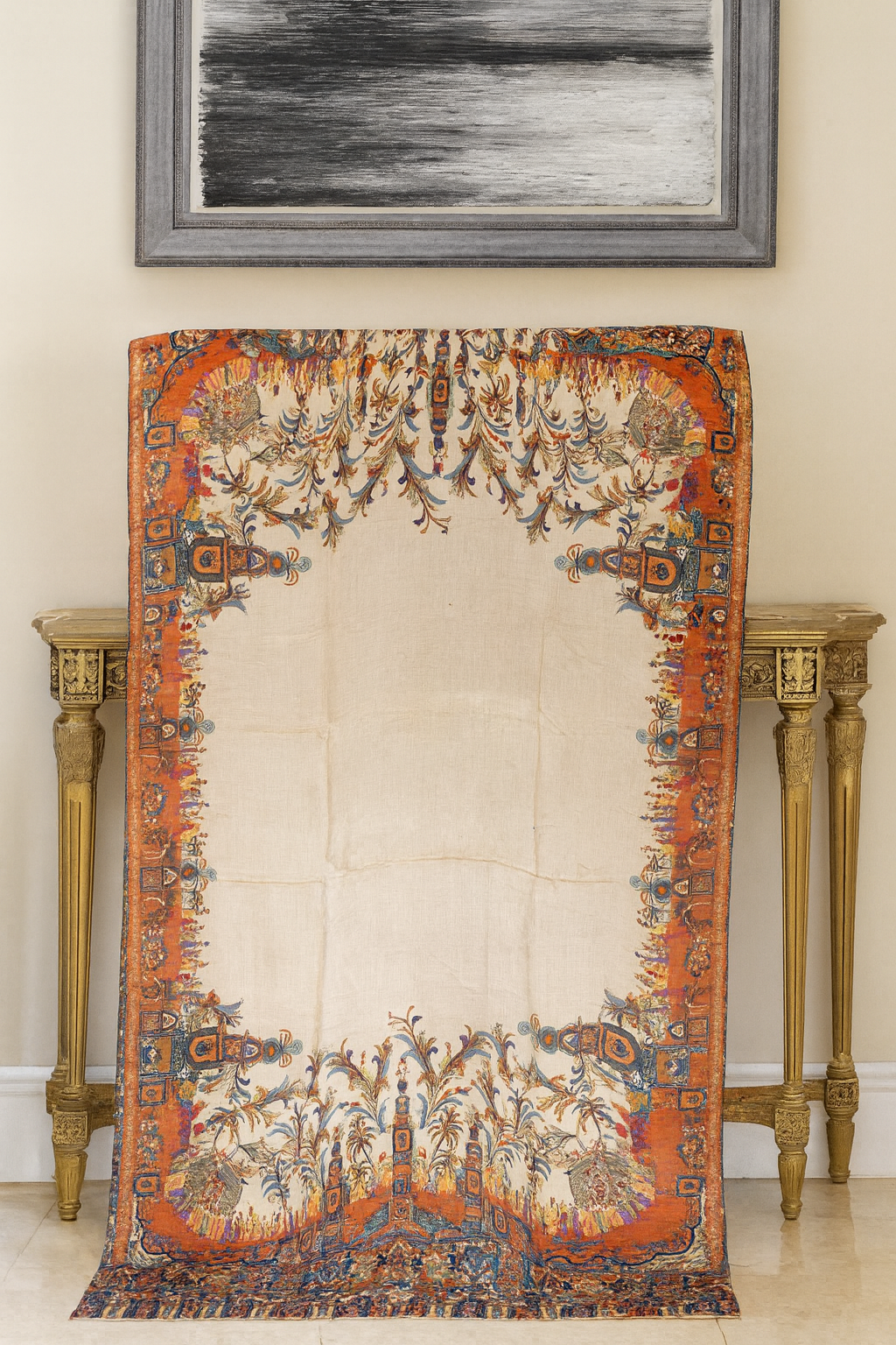 Elevate your wardrobe with this timeless printed pashmina shawl, crafted to perfection for women who value elegance and tradition. The intricate border design in rich hues of rust orange, royal blue, and earthy tones beautifully frames the soft cream base, creating a captivating balance of color and sophistication.