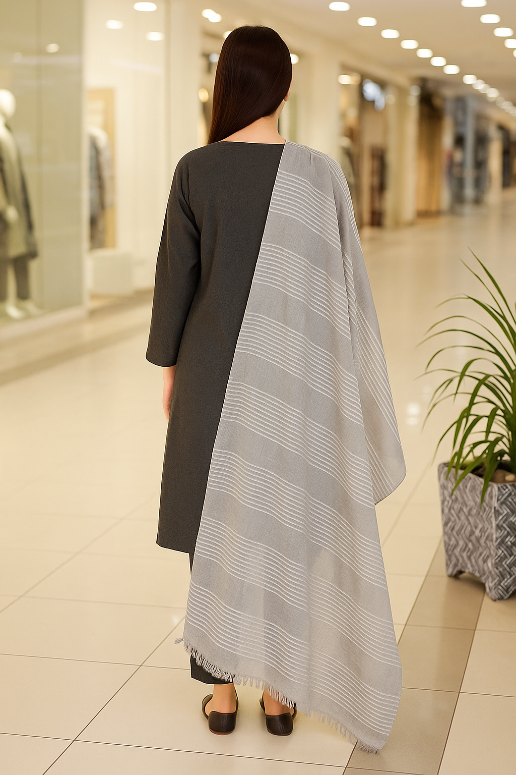 Elevate your everyday elegance with this timeless striped lawn dupatta. Crafted in a soft grey hue, the design strikes the perfect balance between tradition and modern minimalism. Lightweight and breathable, this dupatta is a wardrobe essential for those who appreciate quiet luxury.