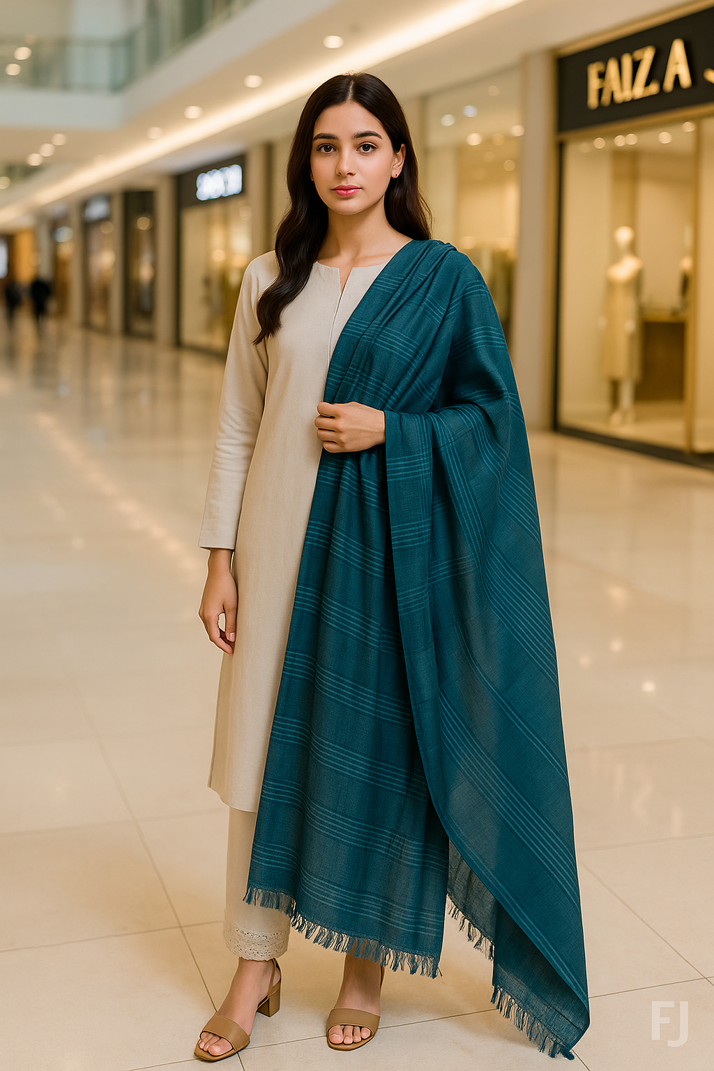 Elevate your everyday elegance with this artisan-crafted teal-blue dupatta, styled here with a soft cream plain suit. The dupatta features delicately woven horizontal stripe detailing that adds subtle texture and visual charm to the rich, flowy fabric. Designed for the modern woman with a love for classic eastern heritage, this piece transitions effortlessly from casual daytime errands to graceful evening outings.