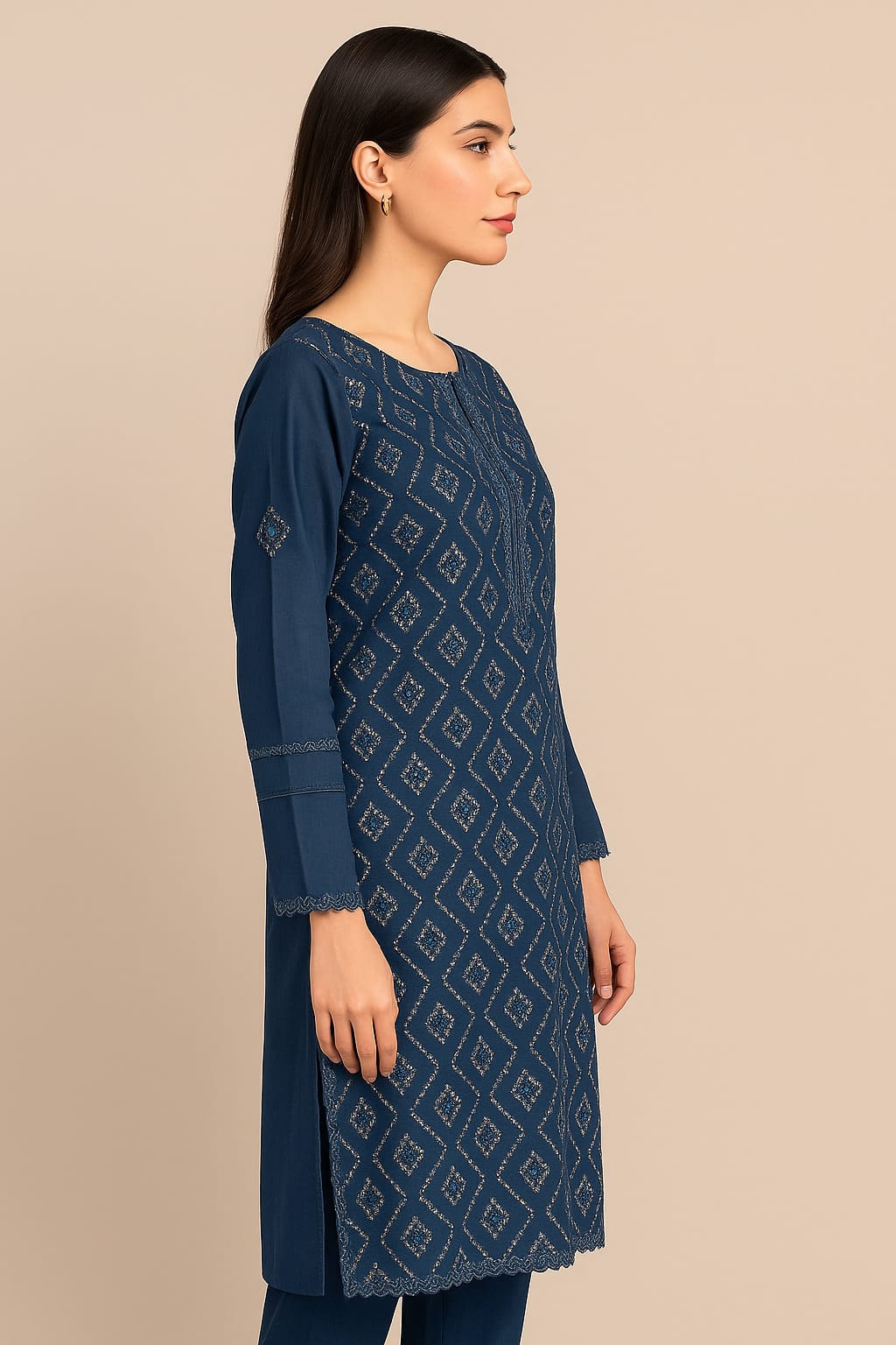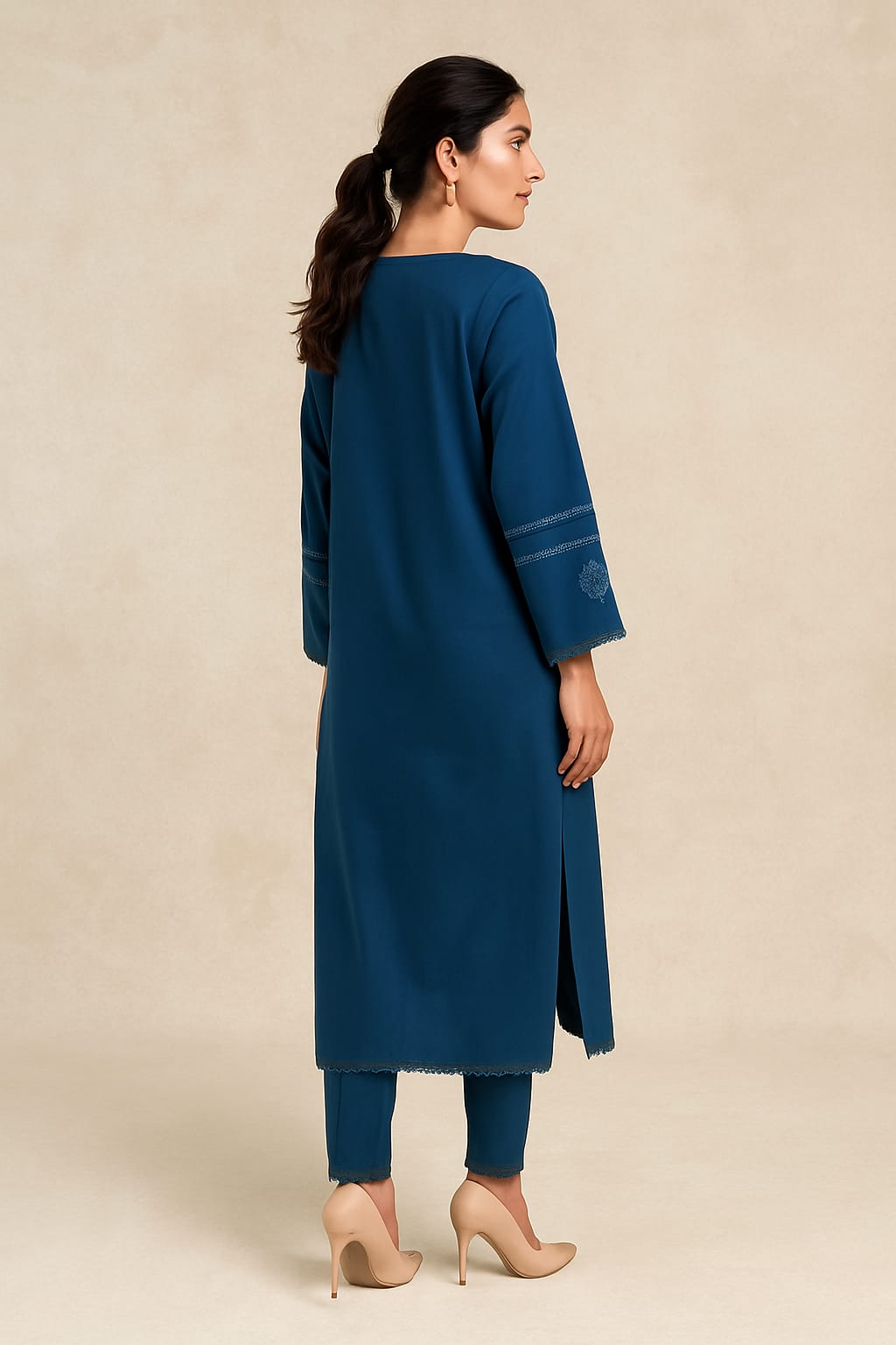 Elevate your everyday elegance with this beautifully crafted 2-piece embroidered lawn suit by Bareeze, designed in a deep teal blue hue that radiates timeless charm. Tailored in a medium size, this ensemble features a straight-fit shirt paired with matching trousers for a polished and graceful look.