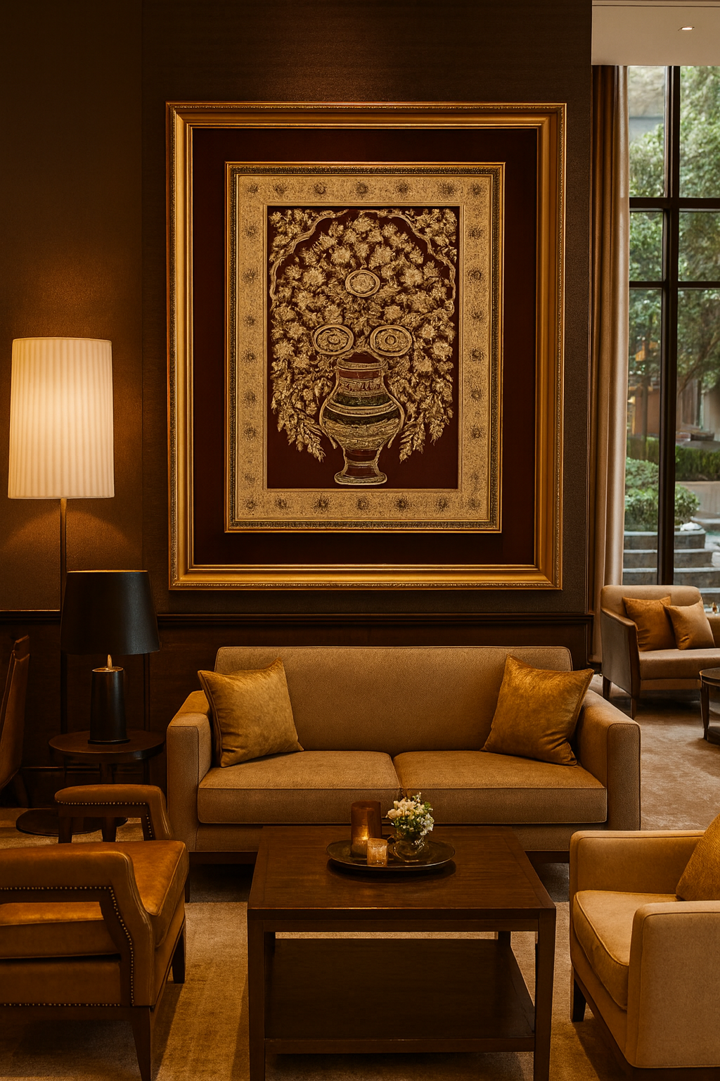 Perfect for enhancing your living room, hallway, or study, this luxurious wall hanging serves as a captivating centerpiece that reflects cultural richness and artistic finesse.